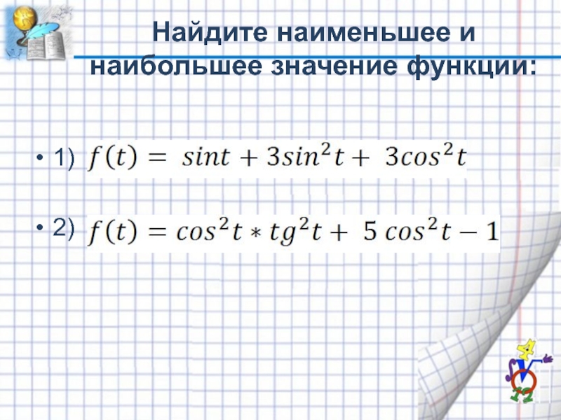 Слайд 5Найдите наименьшее и наибольшее значение функции: