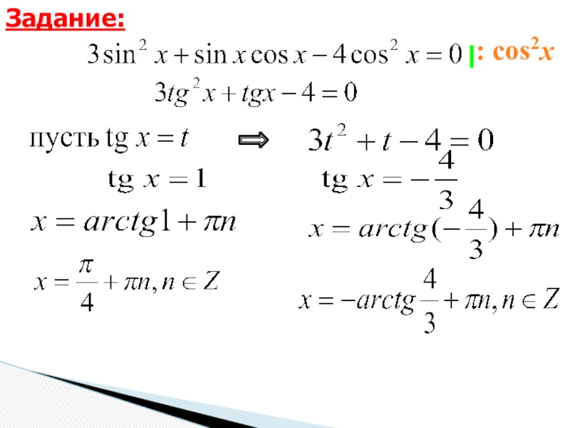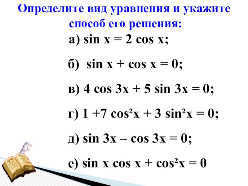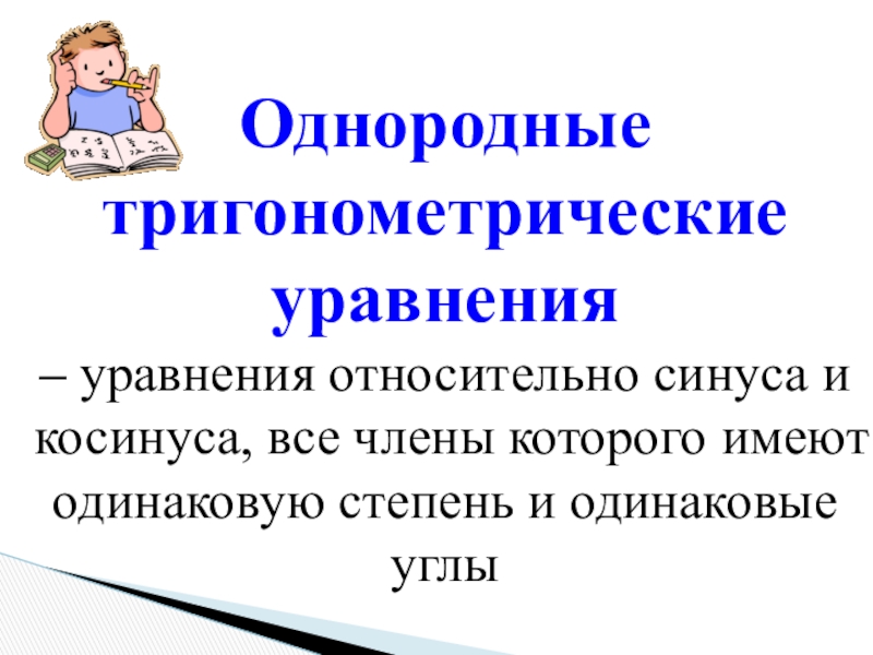 Уравнение называется однородным относительно sin и cos, если все его члены одной и той же степени относительно sin и cos одного и того же угла.