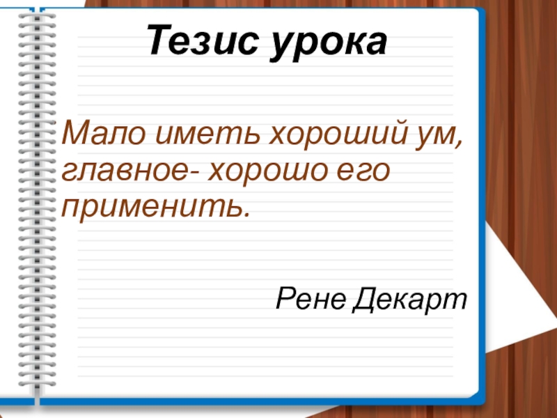 Тезис урокаМало иметь хороший ум, главное- хорошо его применить.