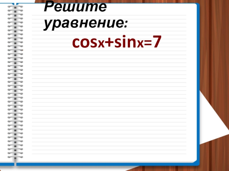 Слайд 10Решите уравнение: cosx+sinx=7