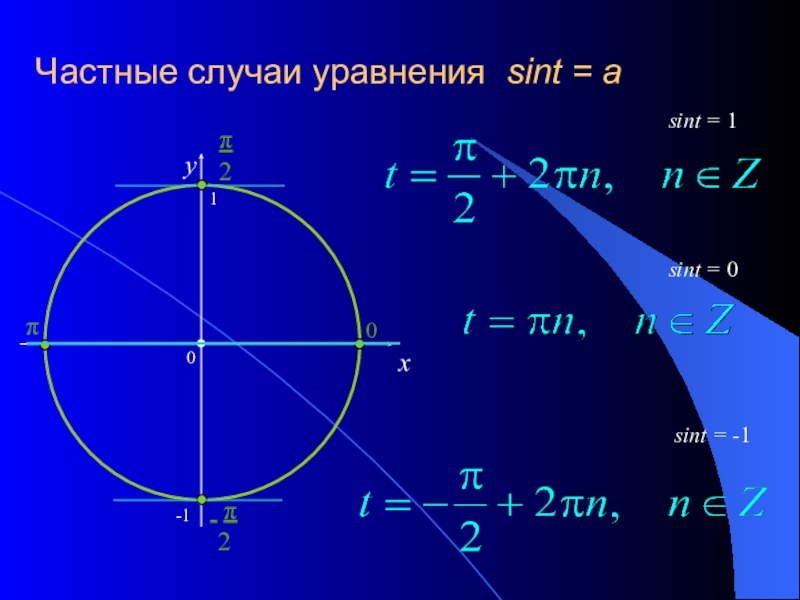 Частные случаи уравнения sint = axysint = 0sint = -1sint = 1