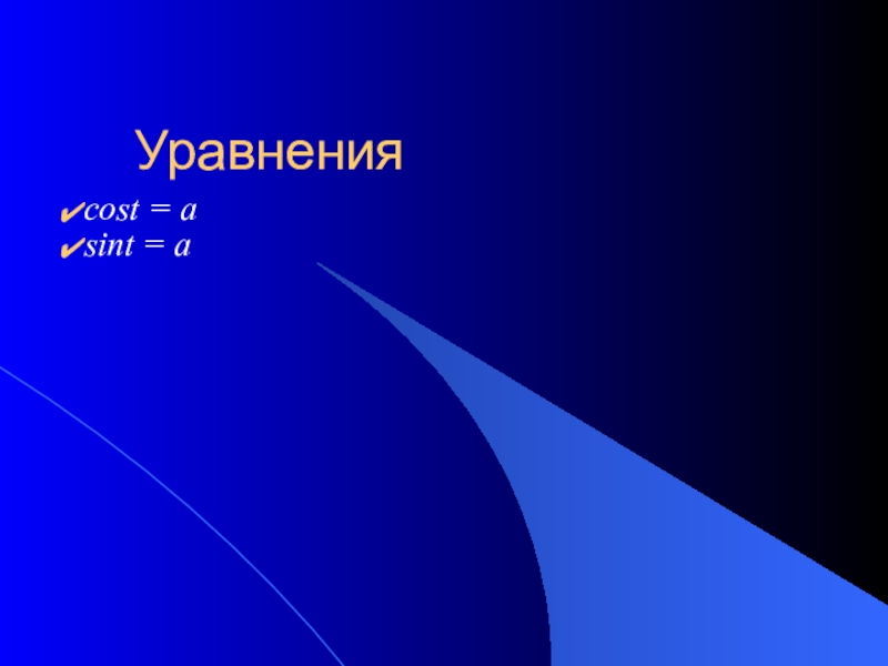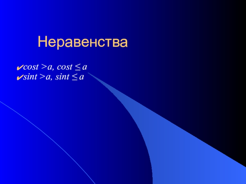 Неравенстваcost >a, cost ≤ a sint >a, sint ≤ a