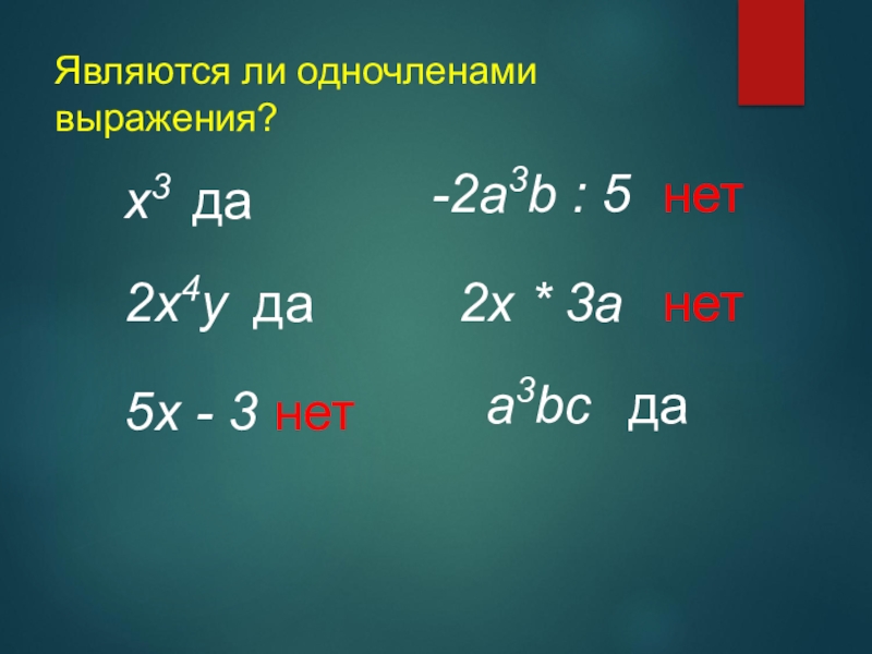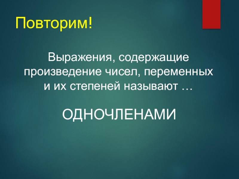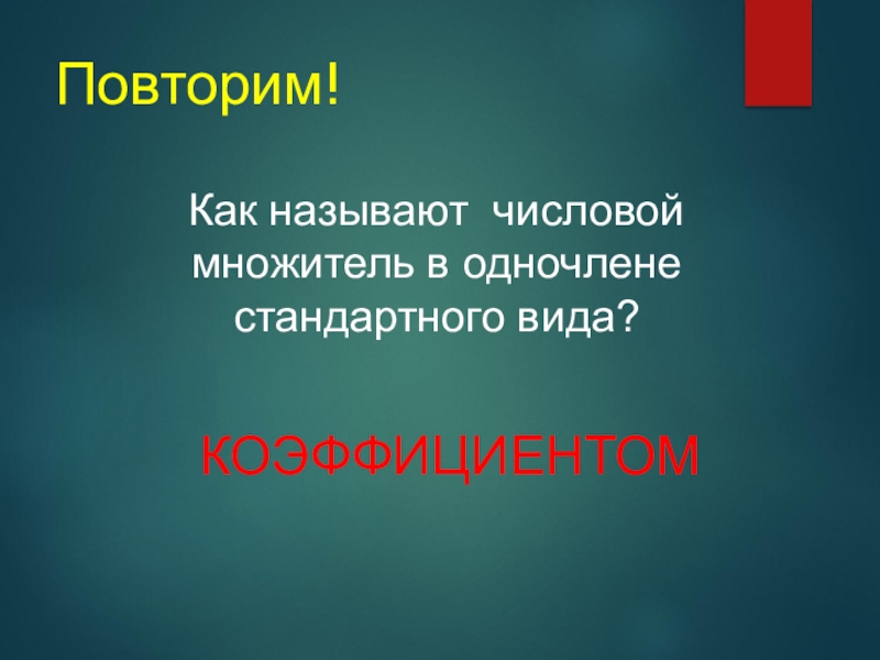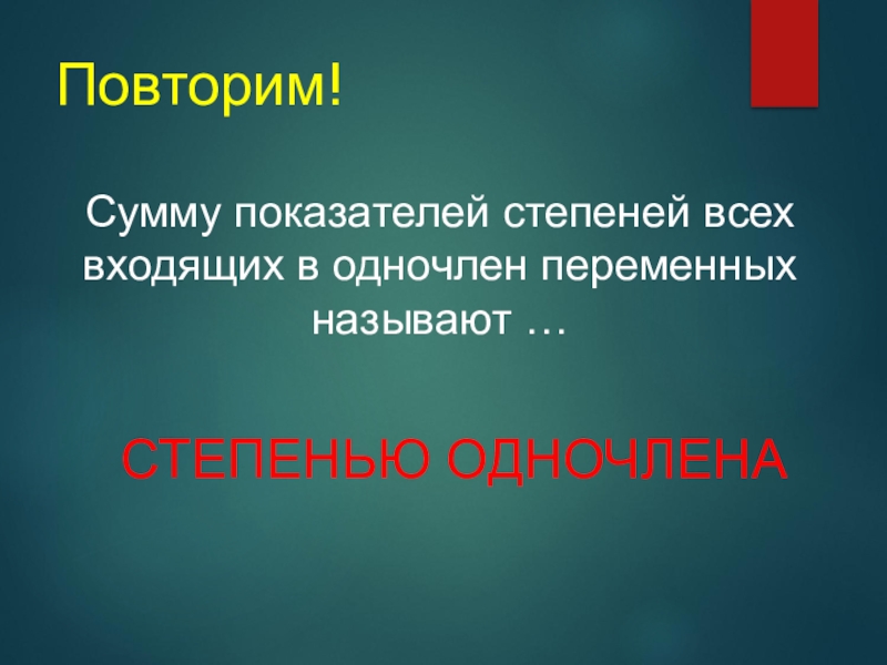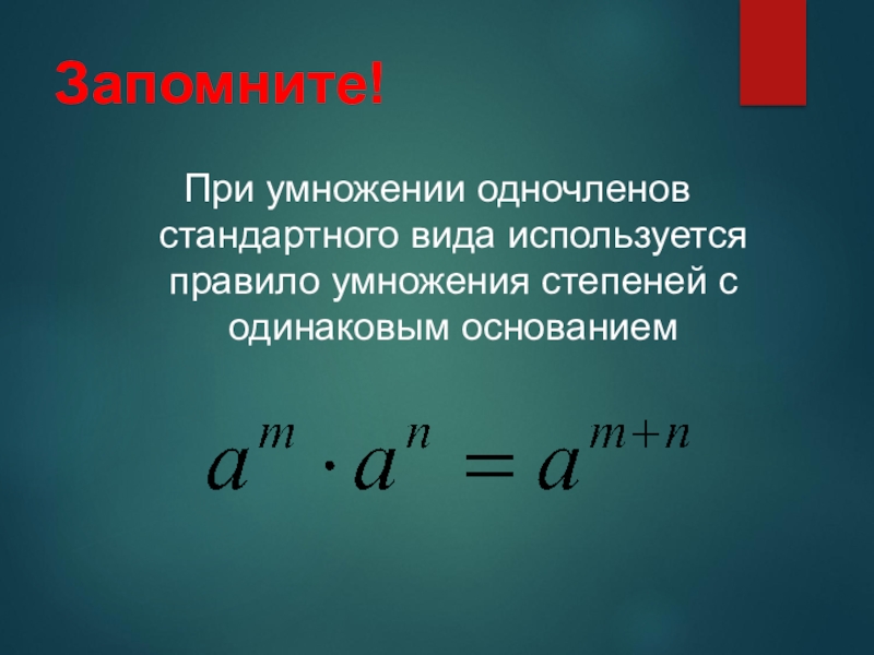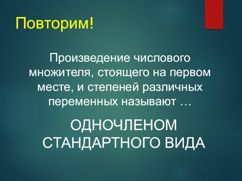 ОДНОЧЛЕНОМ СТАНДАРТНОГО ВИДА