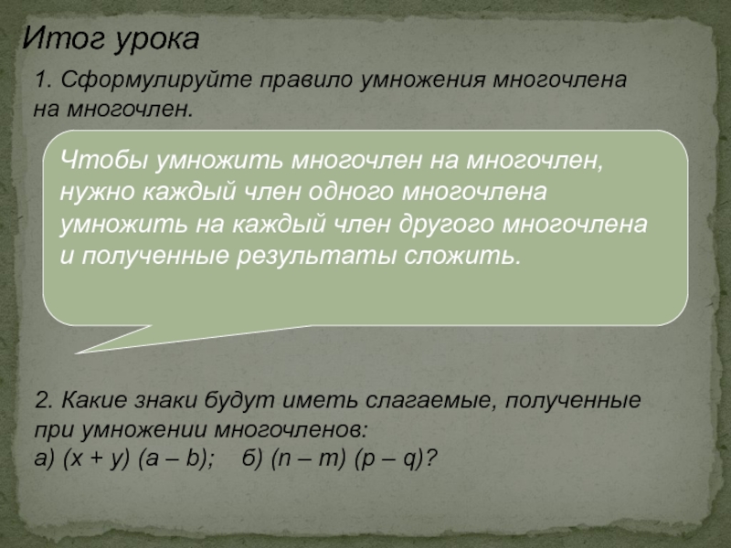 1. Сформулируйте правило умножения многочлена на многочлен.