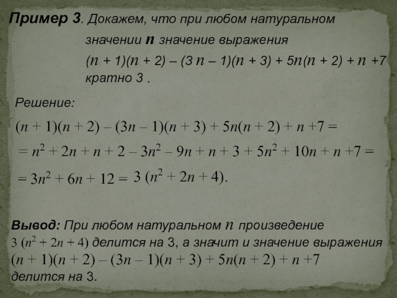 3 (п2 + 2п + 4) делится на 3, а значит и значение выражения