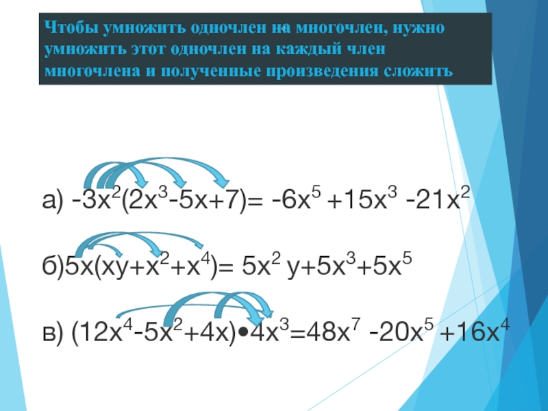 в) (12x4-5x2+4х)•4x3=48x7 -20x5 +16x4