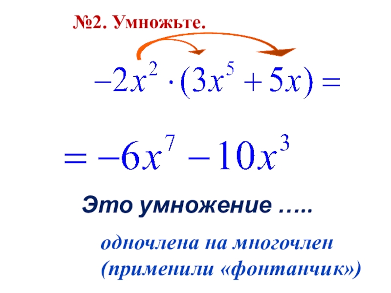 Это умножение ….. одночлена на многочлен(применили «фонтанчик»)№2. Умножьте.
