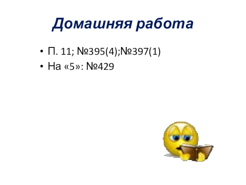 Домашняя работаП. 11; №395(4);№397(1)На «5»: №429
