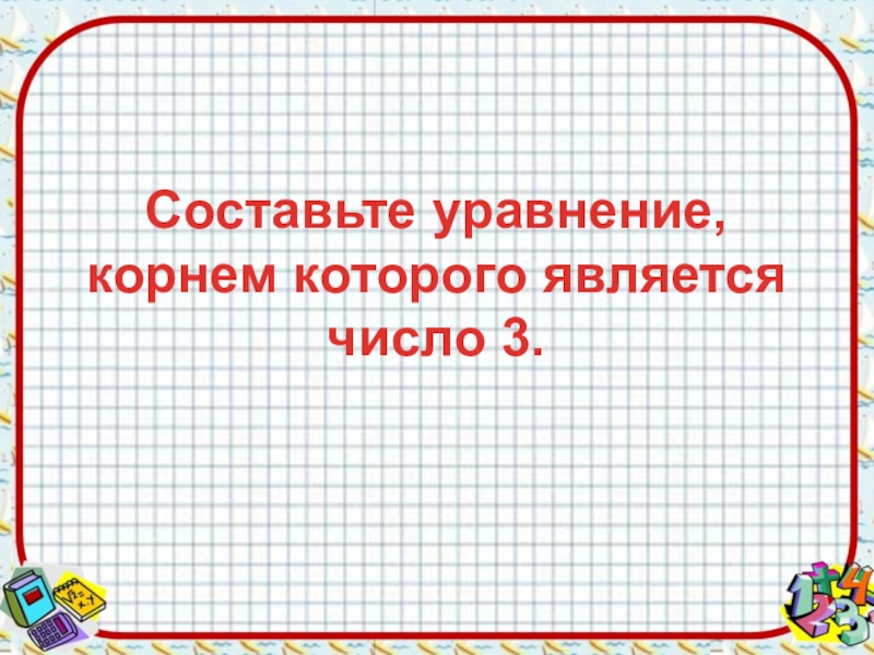 Слайд 7Составьте уравнение, корнем которого является число 3.