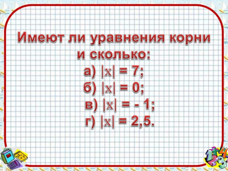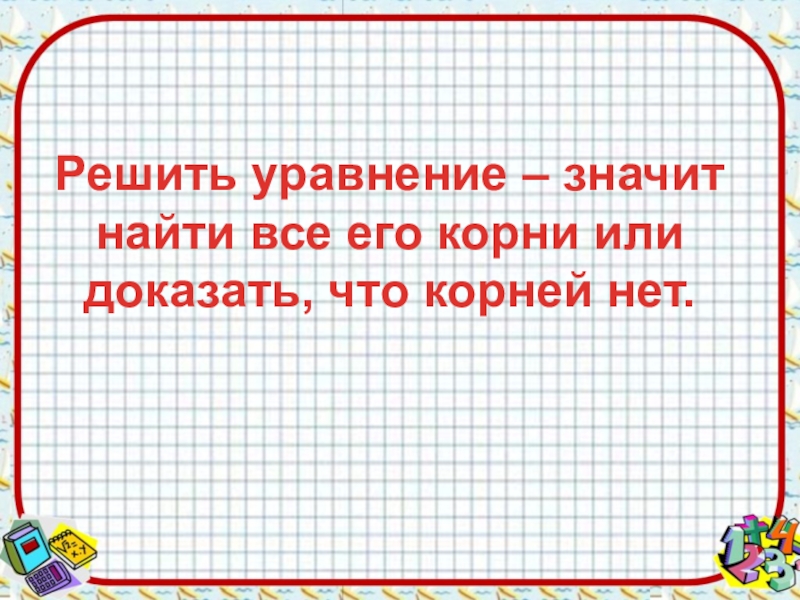 Решить уравнение – значит найти все его корни или доказать, что корней нет.
