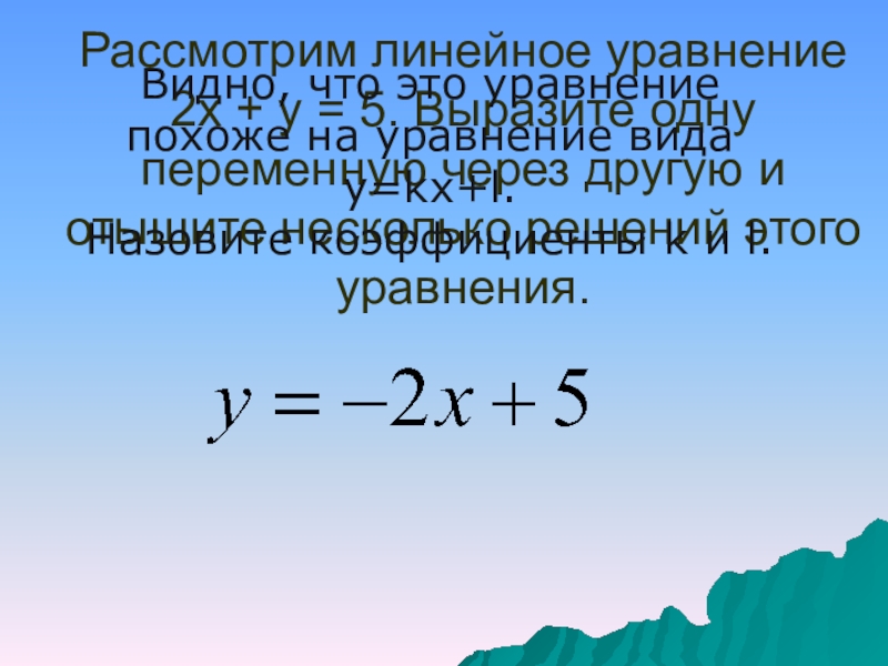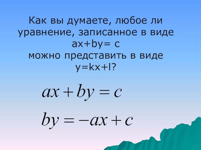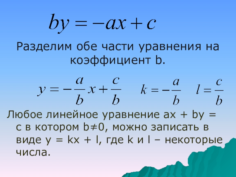 Видно, что это уравнение похоже на уравнение вида у=kx+l.
