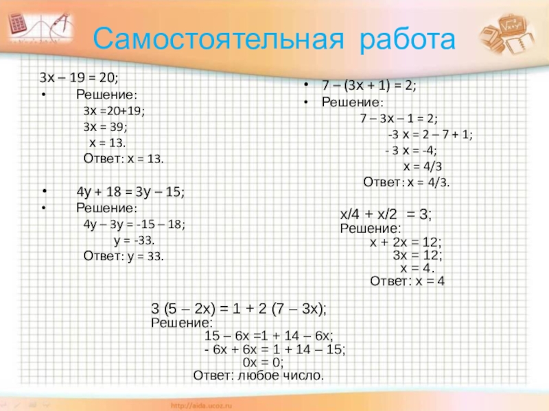 3 (5 – 2х) = 1 + 2 (7 – 3х);