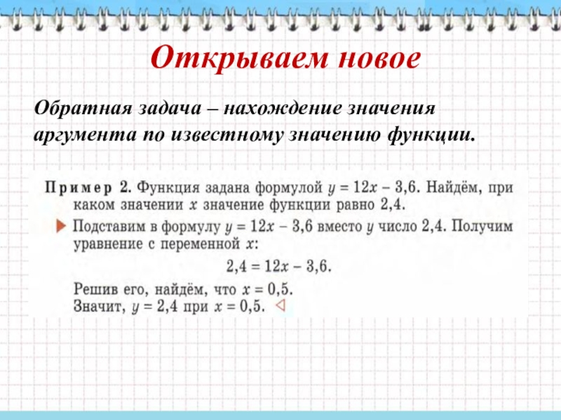 Открываем новоеОбратная задача – нахождение значения аргумента по известному значению функции.