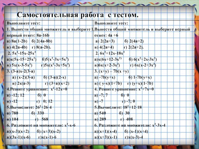УРОК АЛГЕБРЫ ПО ТЕМЕ: