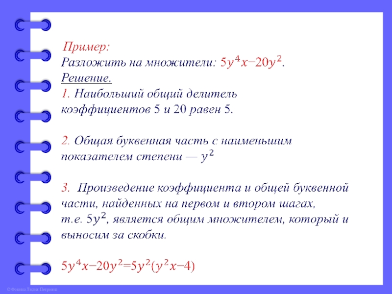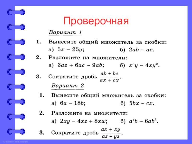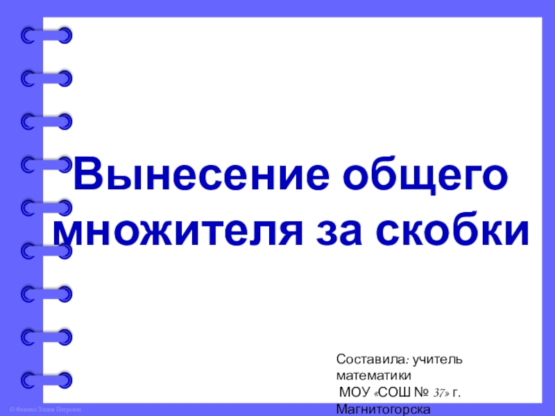 Презентация, доклад по алгебре на тему Вынесение общего множителя за скобки по уч. Г .В. Дорофеев, С. Б. Суворова