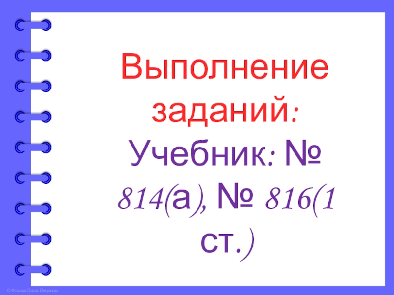 Выполнение заданий:Учебник: № 814(а), № 816(1 ст.)