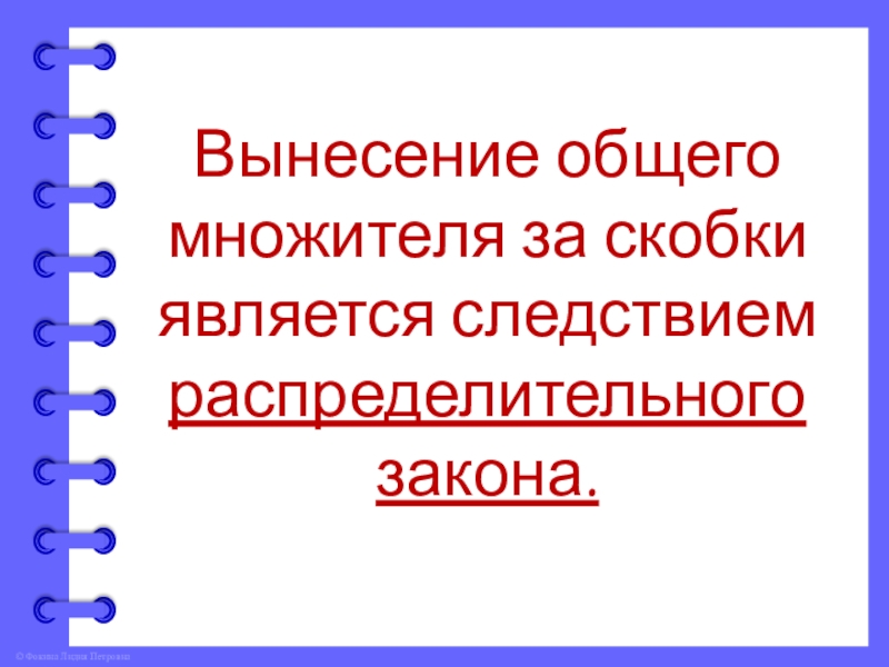 Слайд 2Вынесение общего множителя за скобки является следствием