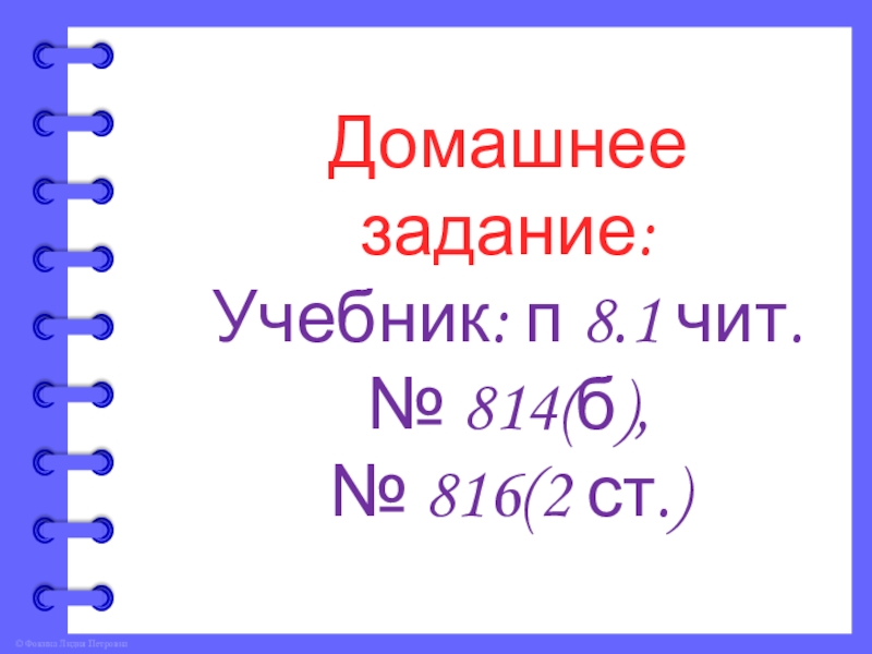 Домашнее задание:Учебник: п 8.1 чит. № 814(б), № 816(2 ст.)