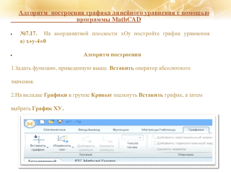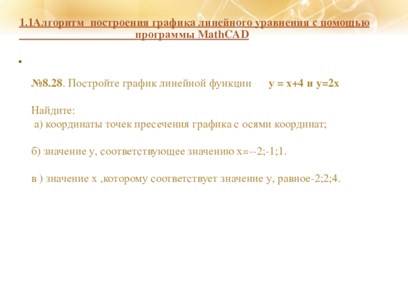 Алгоритм построения графика линейного уравнения с помощьюMathCAD