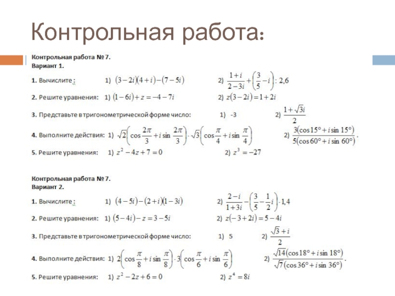 №3. Представьте в тригонометрической форме число:а) 7;б)