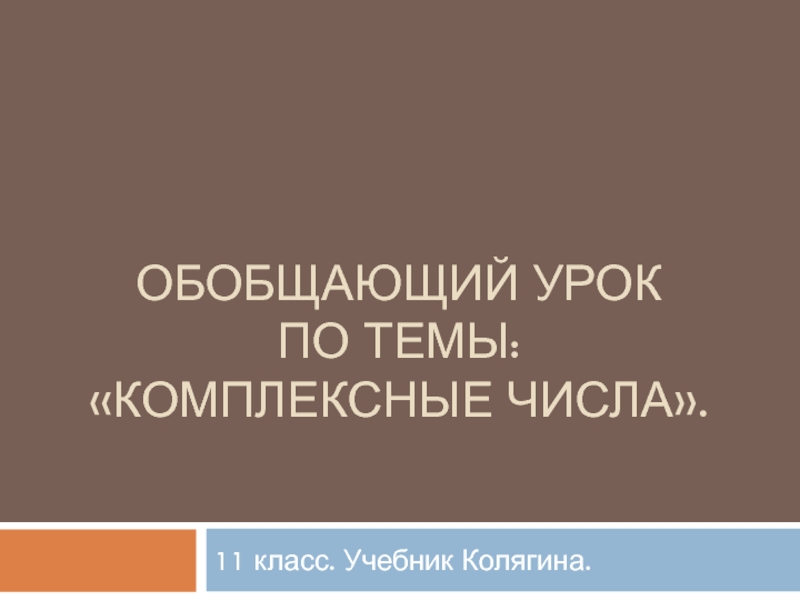 Обобщающий урок  по темы:  «Комплексные числа».11 класс. Учебник Колягина.