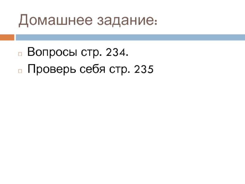 Домашнее задание:Вопросы стр. 234.Проверь себя стр. 235