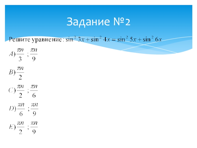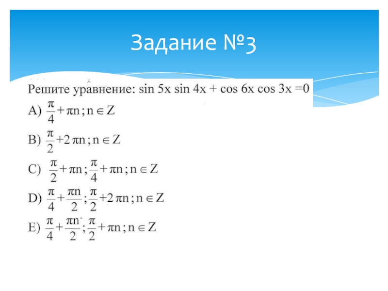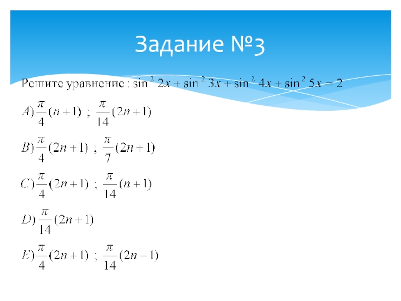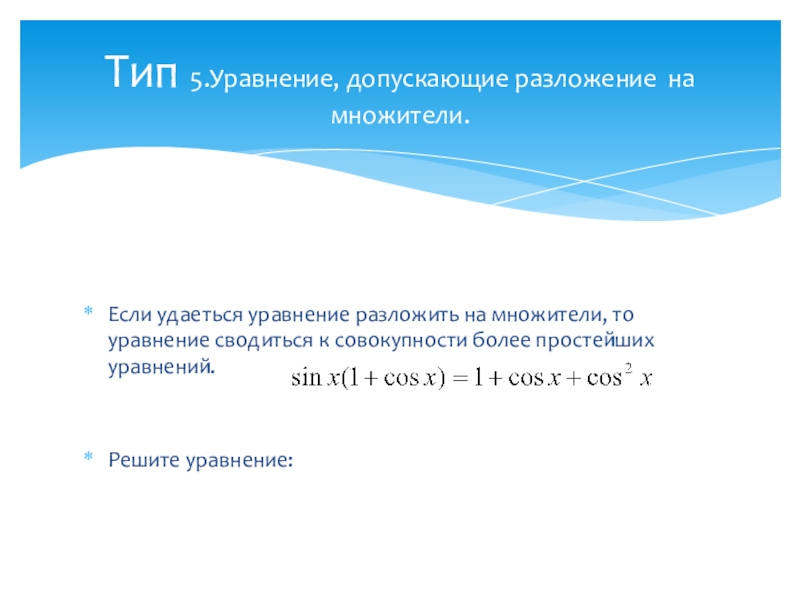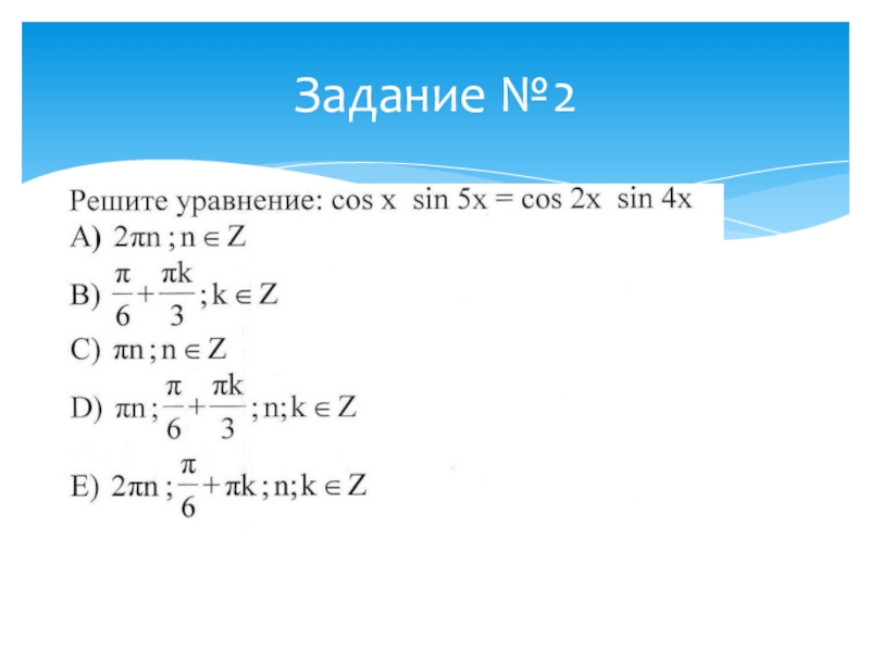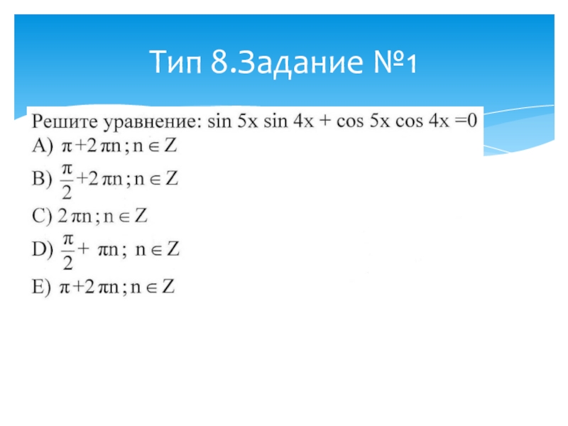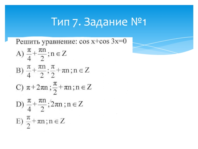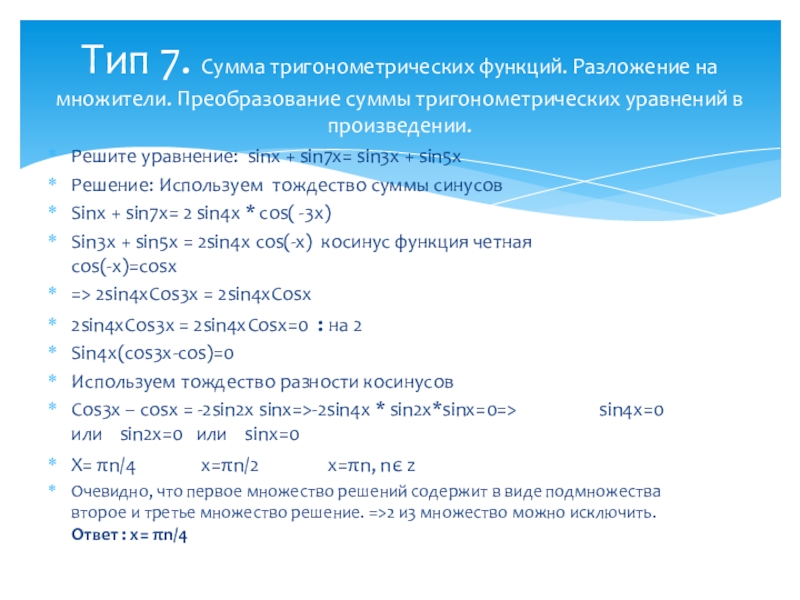 Тип 7. Сумма тригонометрических функций. Разложение на множители. Преобразование суммы тригонометрических уравнений в произведении.