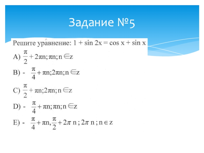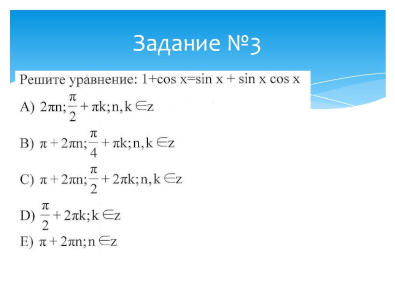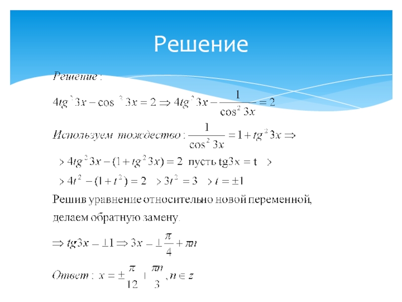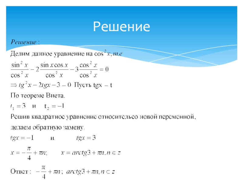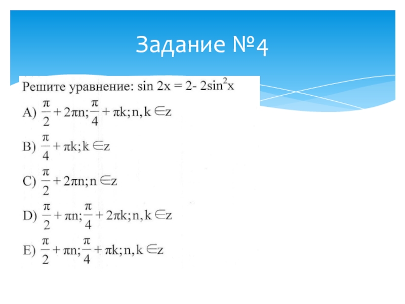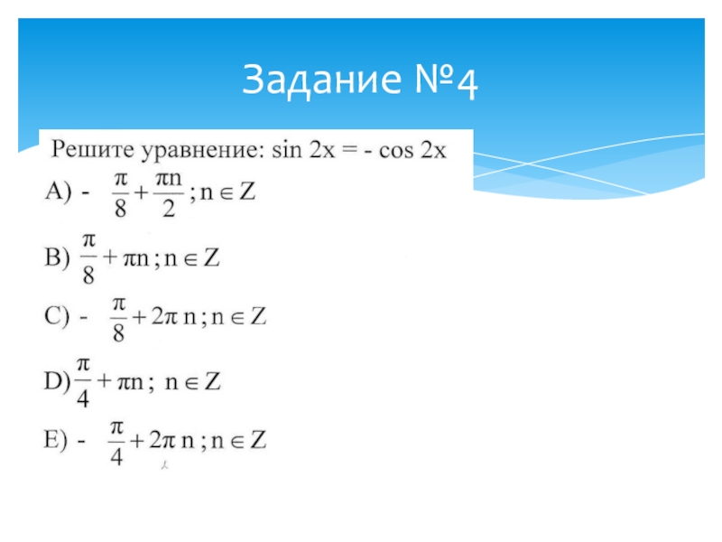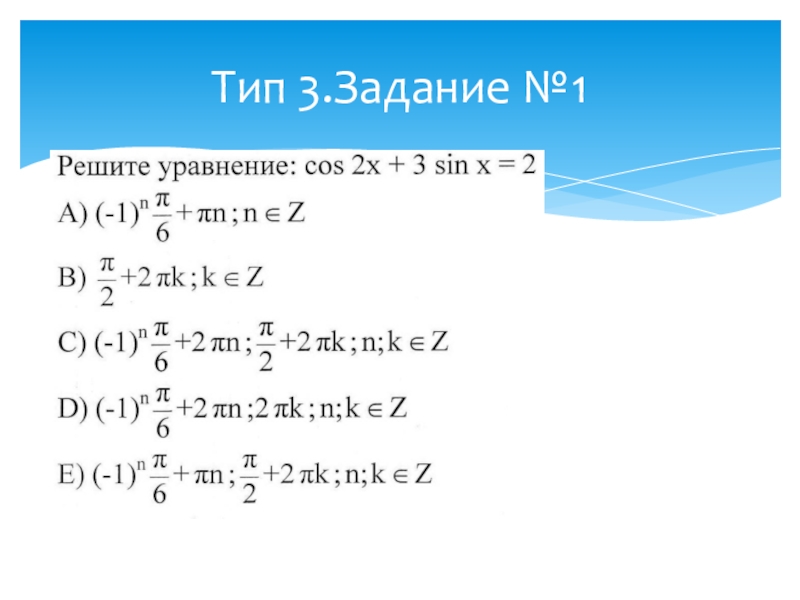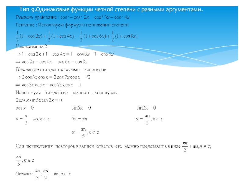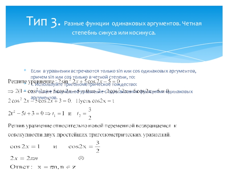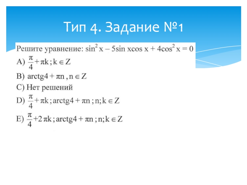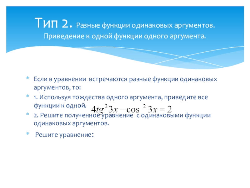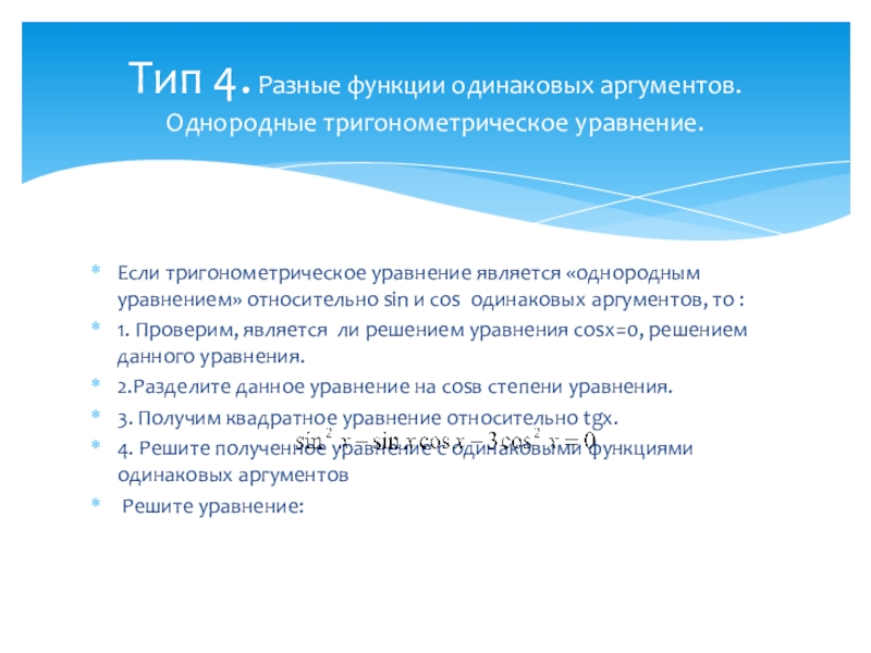 Тип 4. Разные функции одинаковых аргументов. Однородные тригонометрическое уравнение.