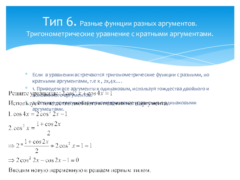 Тип 6. Разные функции разных аргументов. Тригонометрические уравнение с кратными аргументами.