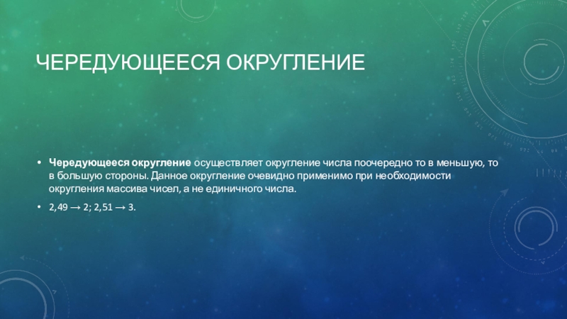 Чередующееся округление осуществляет округление числа поочередно то в меньшую, то