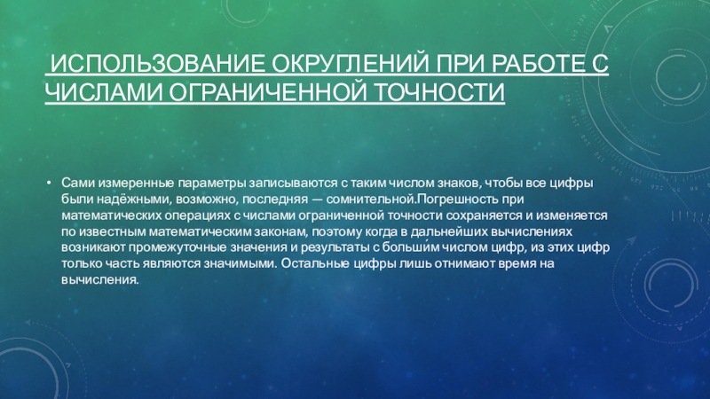 Слайд 6 Использование округлений при работе с числами ограниченной точности