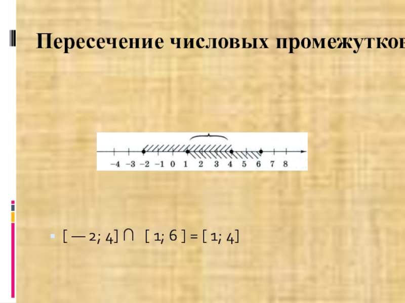 Пересечение числовых промежутков[ — 2; 4] ∩   [ 1; 6 ] = [ 1; 4]