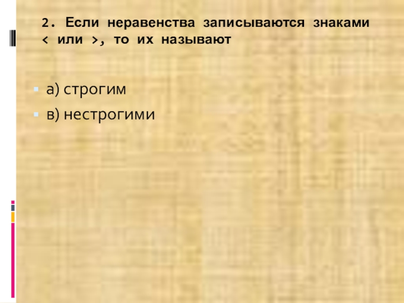 2. Если неравенства записываются знаками  < или >, то их называют 		    а) строгимв)