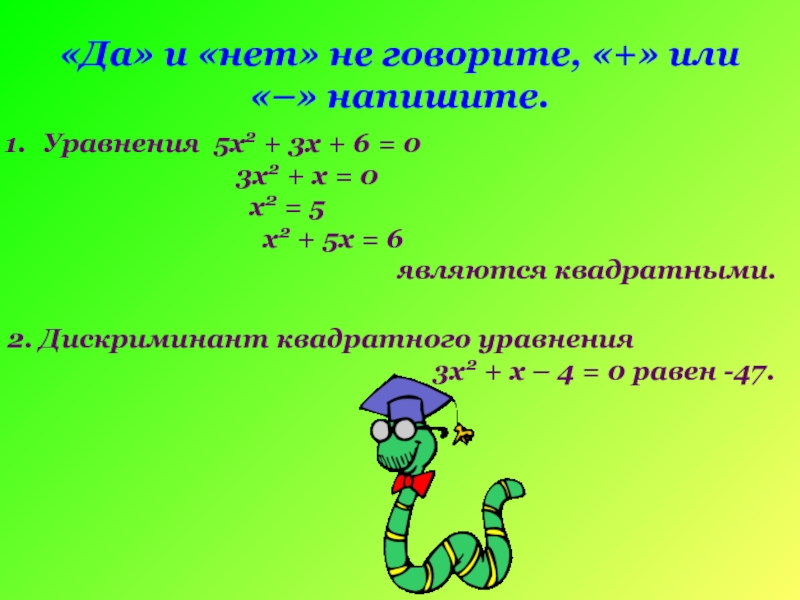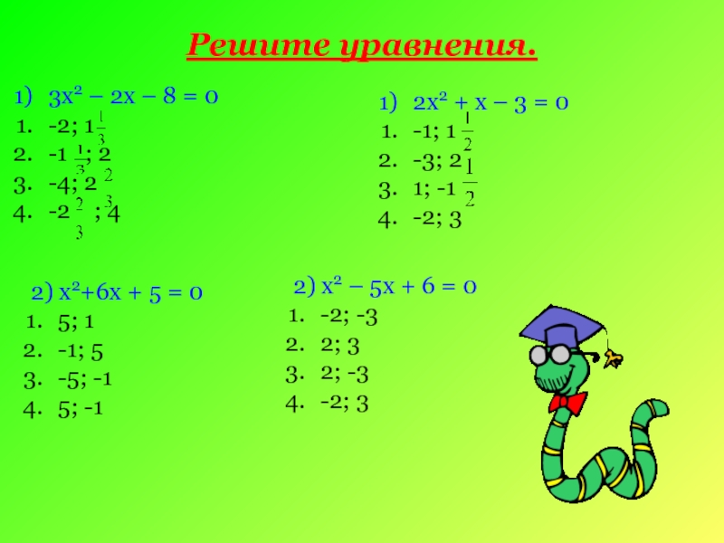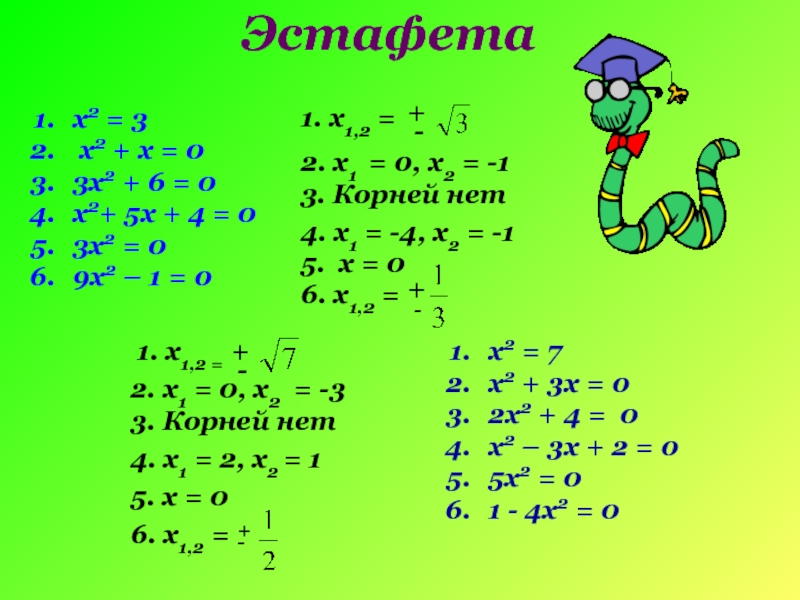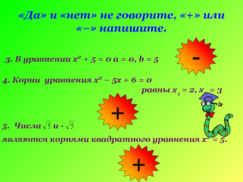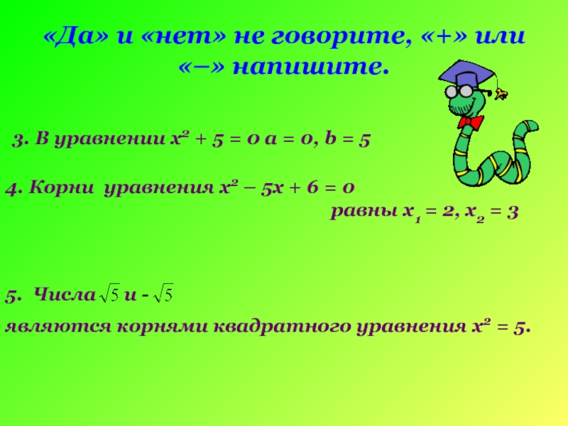3) Уравнение х2 – 7х + с = 0 имеет корень х1 = 5.