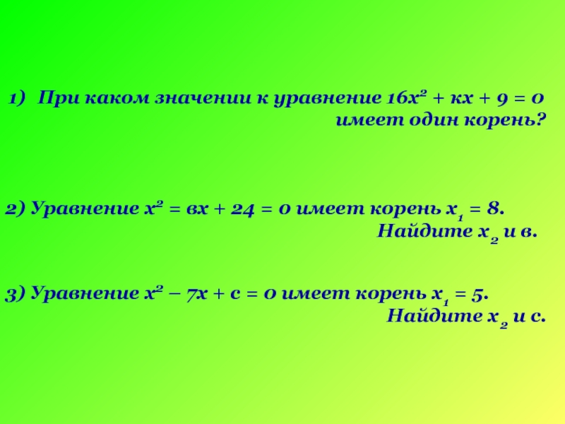 2) Уравнение х2 = вх + 24 = 0 имеет корень х1 = 8.
