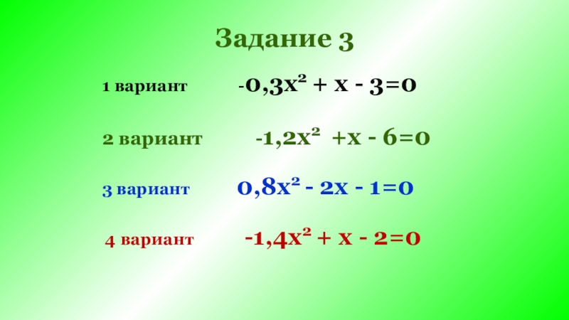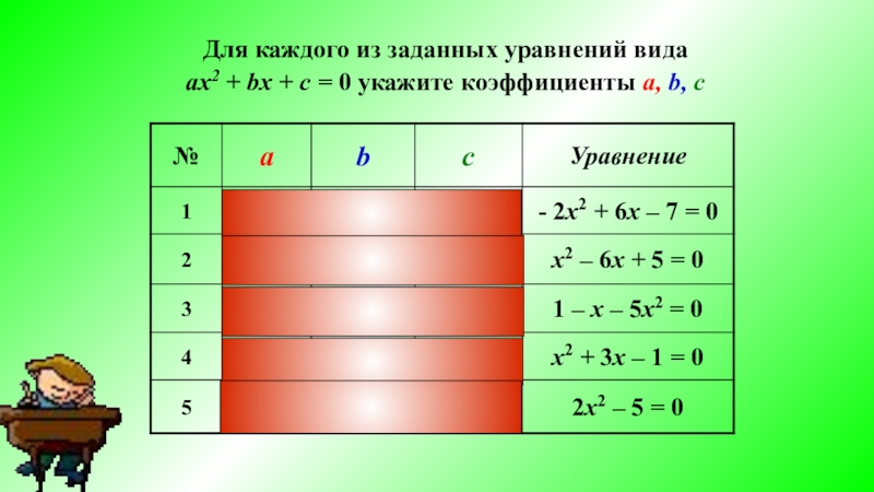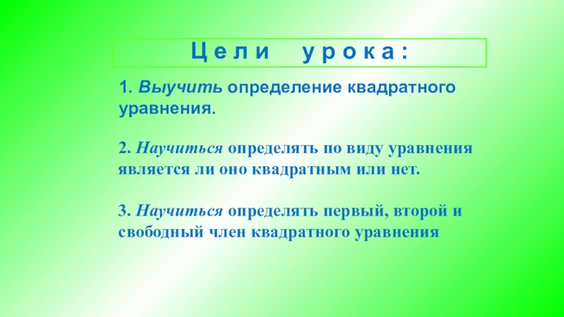 3. Научиться определять первый, второй и свободный член квадратного уравнения
