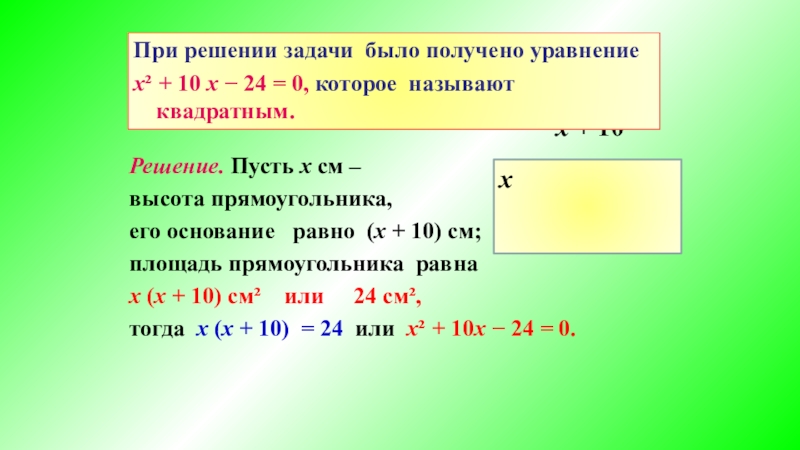 х² + 10 х − 24 = 0, которое называют квадратным.