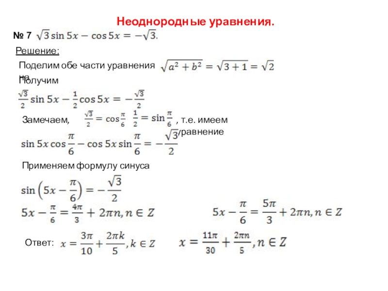 Разделим обе части уравнения на, Это можно сделать, т.к.