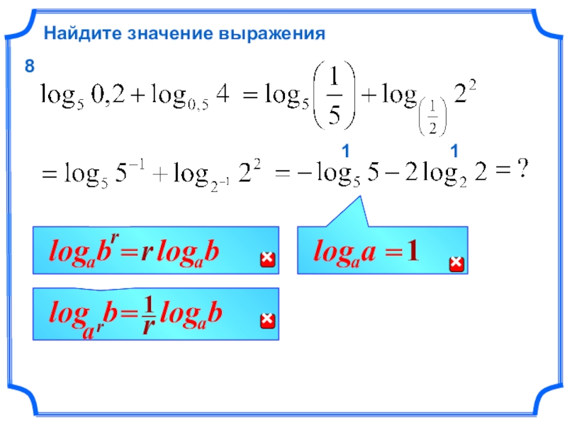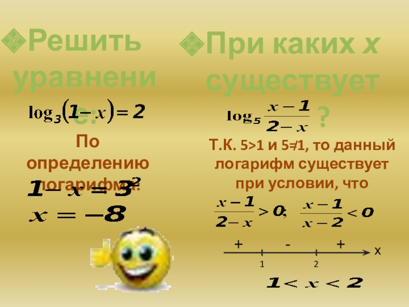 Т.К. 5>1 и 5=1, то данный логарифм существует при условии, что