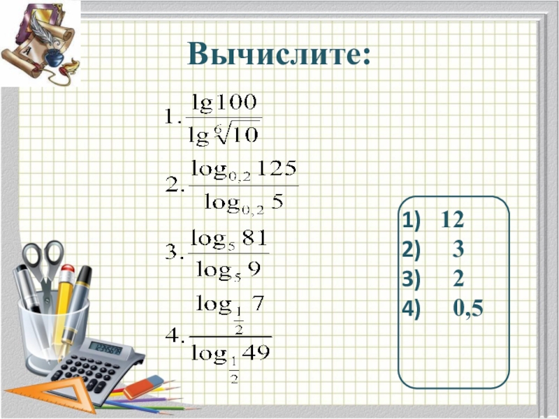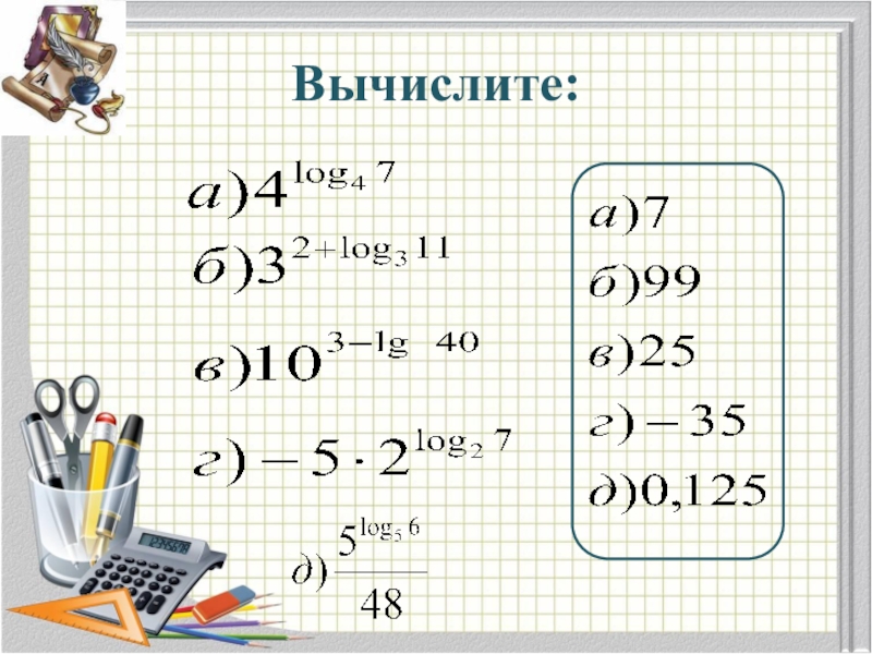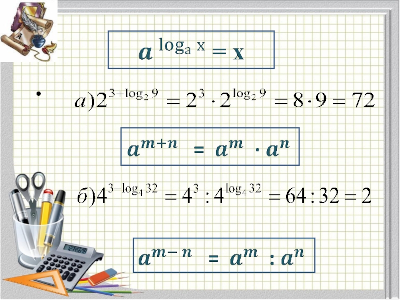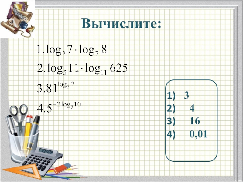 Презентация, доклад по алгебре Понятие логарифма. Свойства логарифмов.(11 класс)