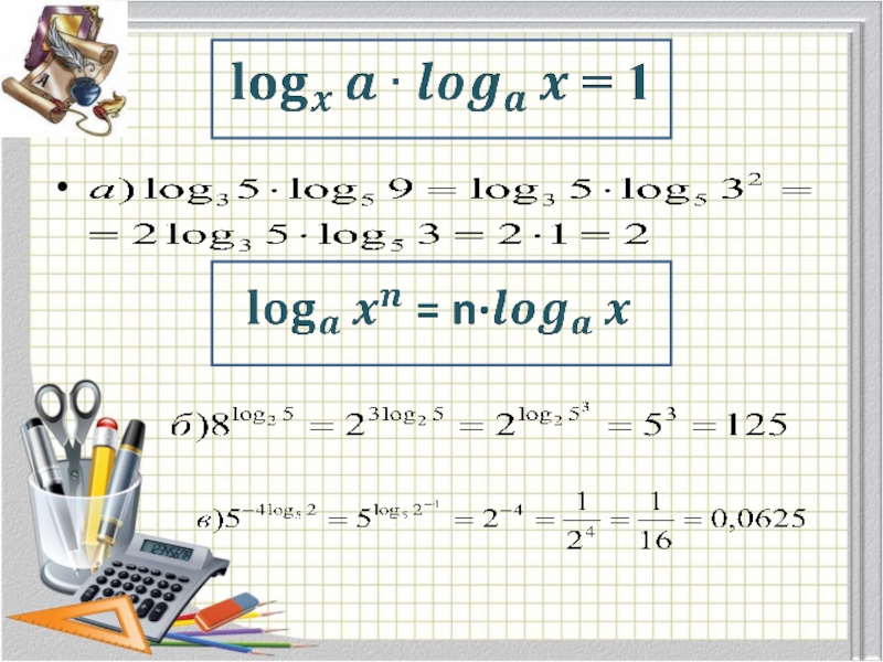 и отличному от 1 основанию а называется показатель степени, в которую надо возвести число а, чтобы получить число b.