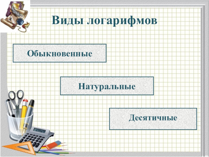 Виды логарифмовОбыкновенныеДесятичныеНатуральные