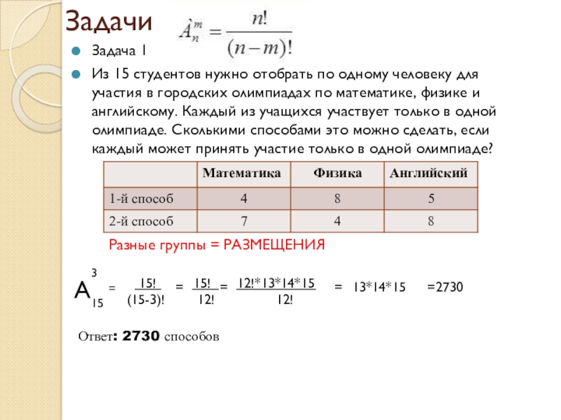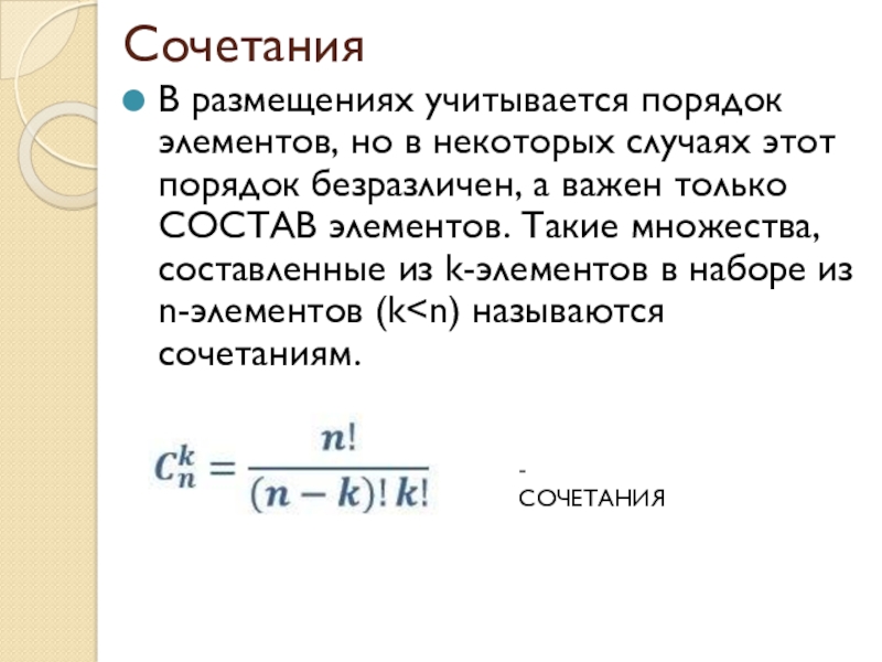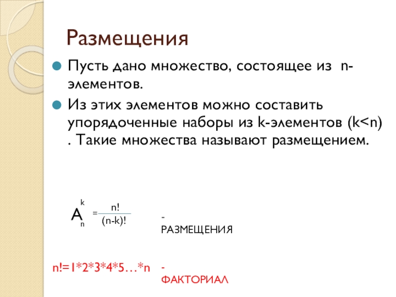 Размещения Сочетания Перестановки