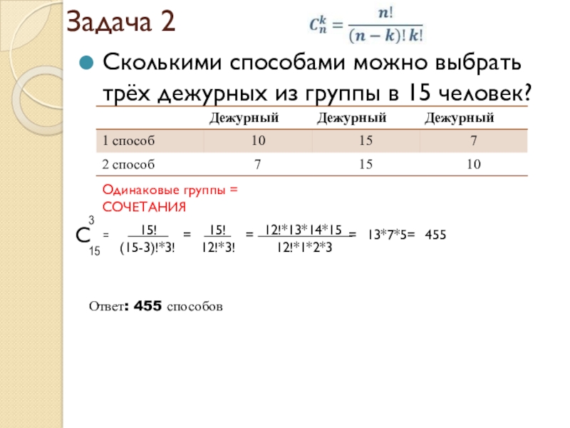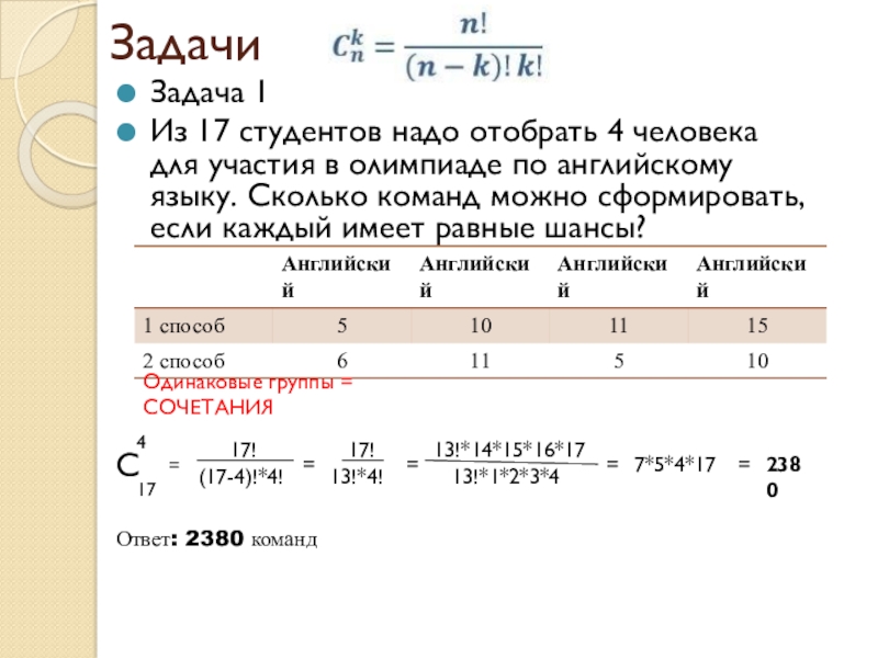 Одинаковые группы = СОЧЕТАНИЯ