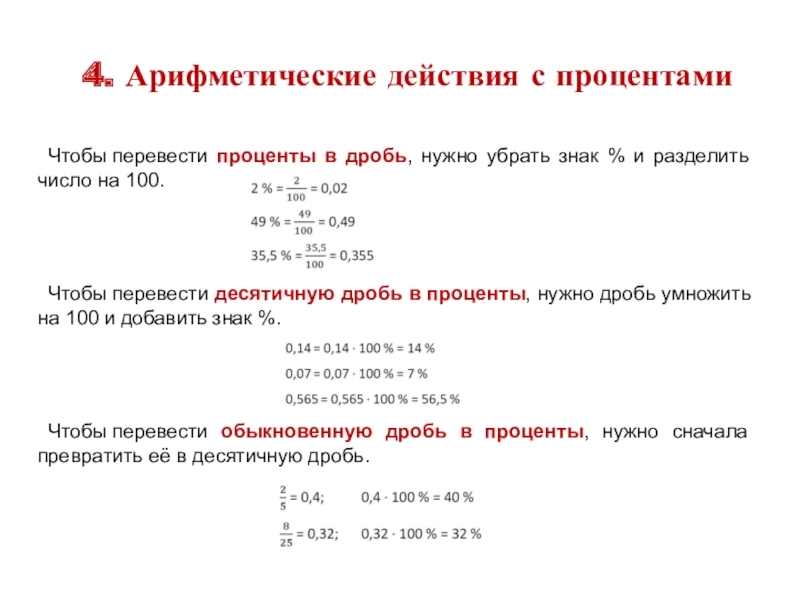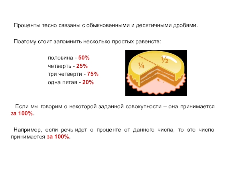 Проценты тесно связаны с обыкновенными и десятичными дробями.