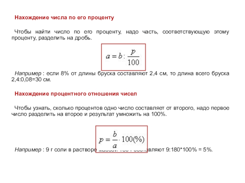 Например : если 8% от длины бруска составляют 2,4 см, то длина всего бруска 2,4:0,08=30 см.