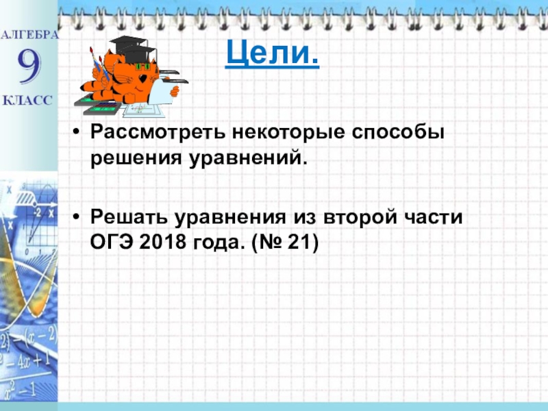 Заседание математического кружка « Школа точной мысли». 9 класс. Подготовка к ОГЭ. Задача № 21.