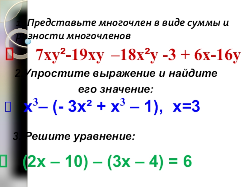 (2х – 10) – (3х – 4) = 6