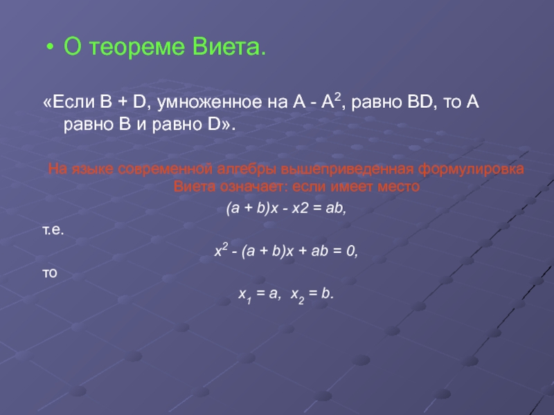 На языке современной алгебры вышеприведенная формулировка Виета означает: если имеет место
