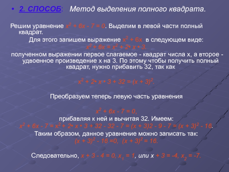 Слайд 92. СПОСОБ: Метод выделения полного квадрата.